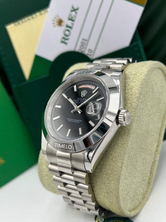 ساعت مچی Rolex Day-Date، نمادی از ثروت و موفقیت است که با طراحی بینظیر و بدنه استیل درخشان، استایلی نیمهرسمی و لوکس به شما میبخشد. این ساعت با صفحه نمایش متمایز خود که علاوه بر تاریخ، روزهای هفته را نیز در موقعیت ساعت ۱۲ نشان میدهد، یکی از محبوبترین انتخابها برای آقایان خوشسلیقه است.