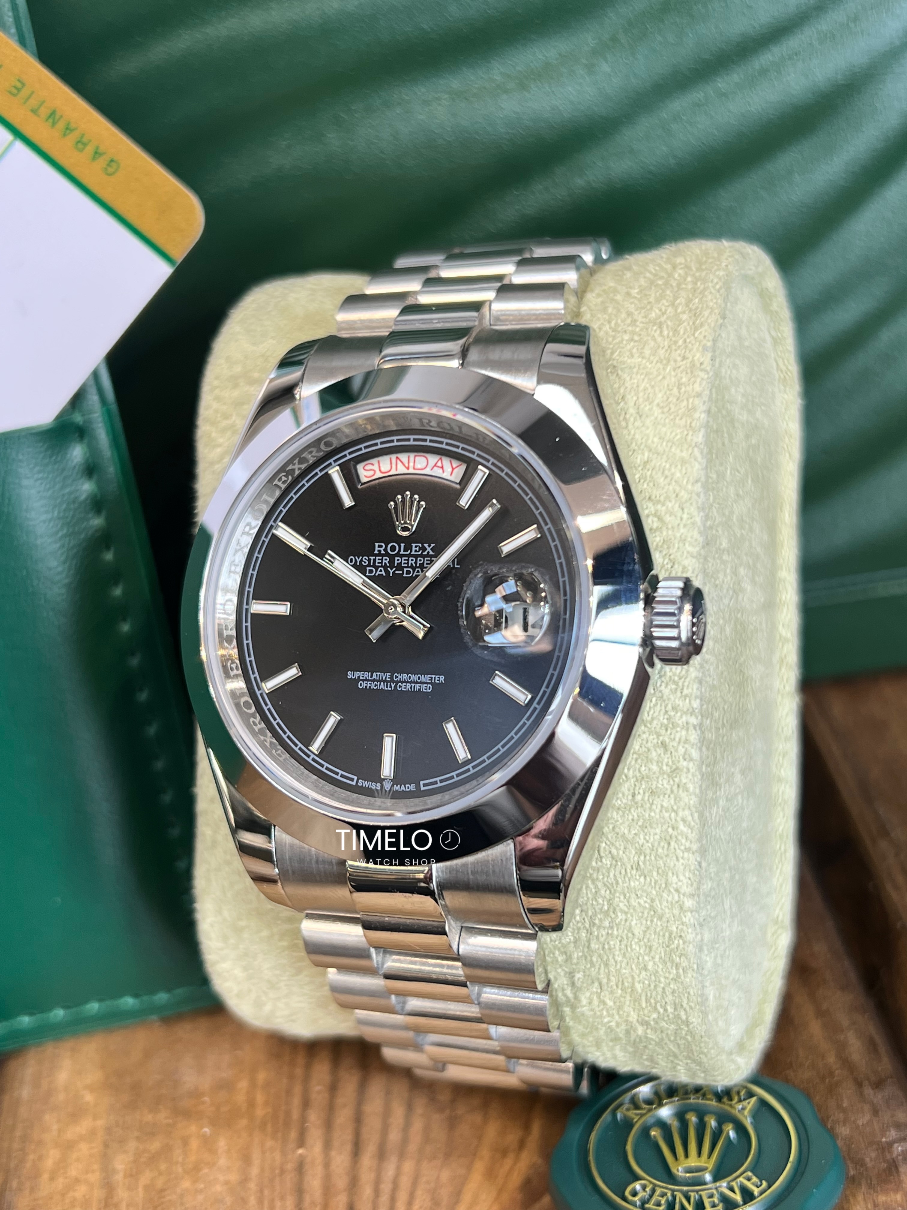 ساعت مچی Rolex Day-Date، نمادی از ثروت و موفقیت است که با طراحی بینظیر و بدنه استیل درخشان، استایلی نیمهرسمی و لوکس به شما میبخشد. این ساعت با صفحه نمایش متمایز خود که علاوه بر تاریخ، روزهای هفته را نیز در موقعیت ساعت ۱۲ نشان میدهد، یکی از محبوبترین انتخابها برای آقایان خوشسلیقه است.