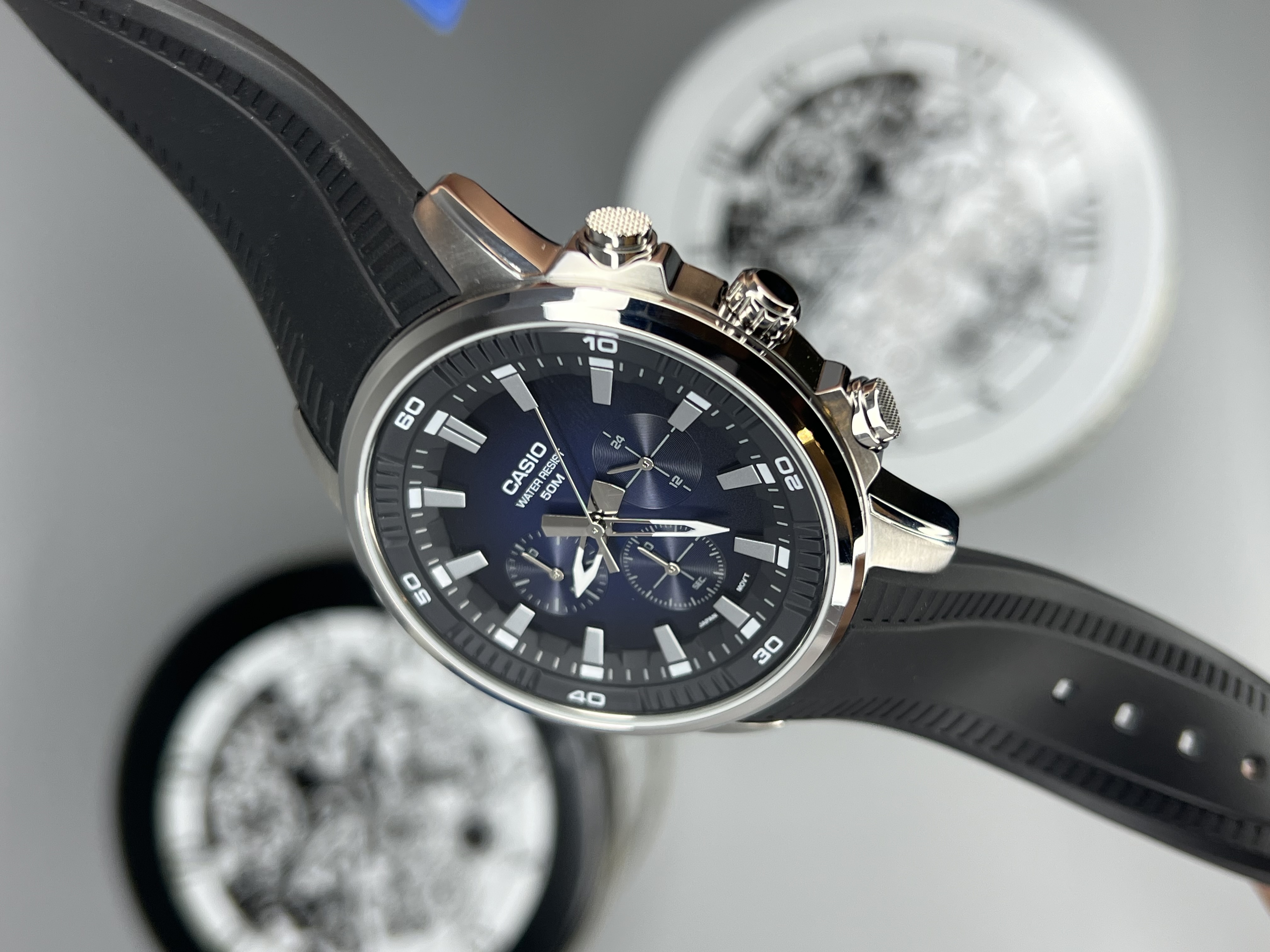 ساعت Casio MTP-E505 با طراحی کلاسیک و اسپرت، ترکیبی از سادگی و کاراییه. بدنهی استیل ضد زنگ و مقاومت در برابر آب تا ۵۰ متر، اون رو مناسب استفاده روزمره و موقعیتهای رسمی کرده. این مدل دارای کرنومتر، تقویم و دقت بالاست و با باتری دوساله، دوام و عملکرد قابلاعتمادی ارائه میده.