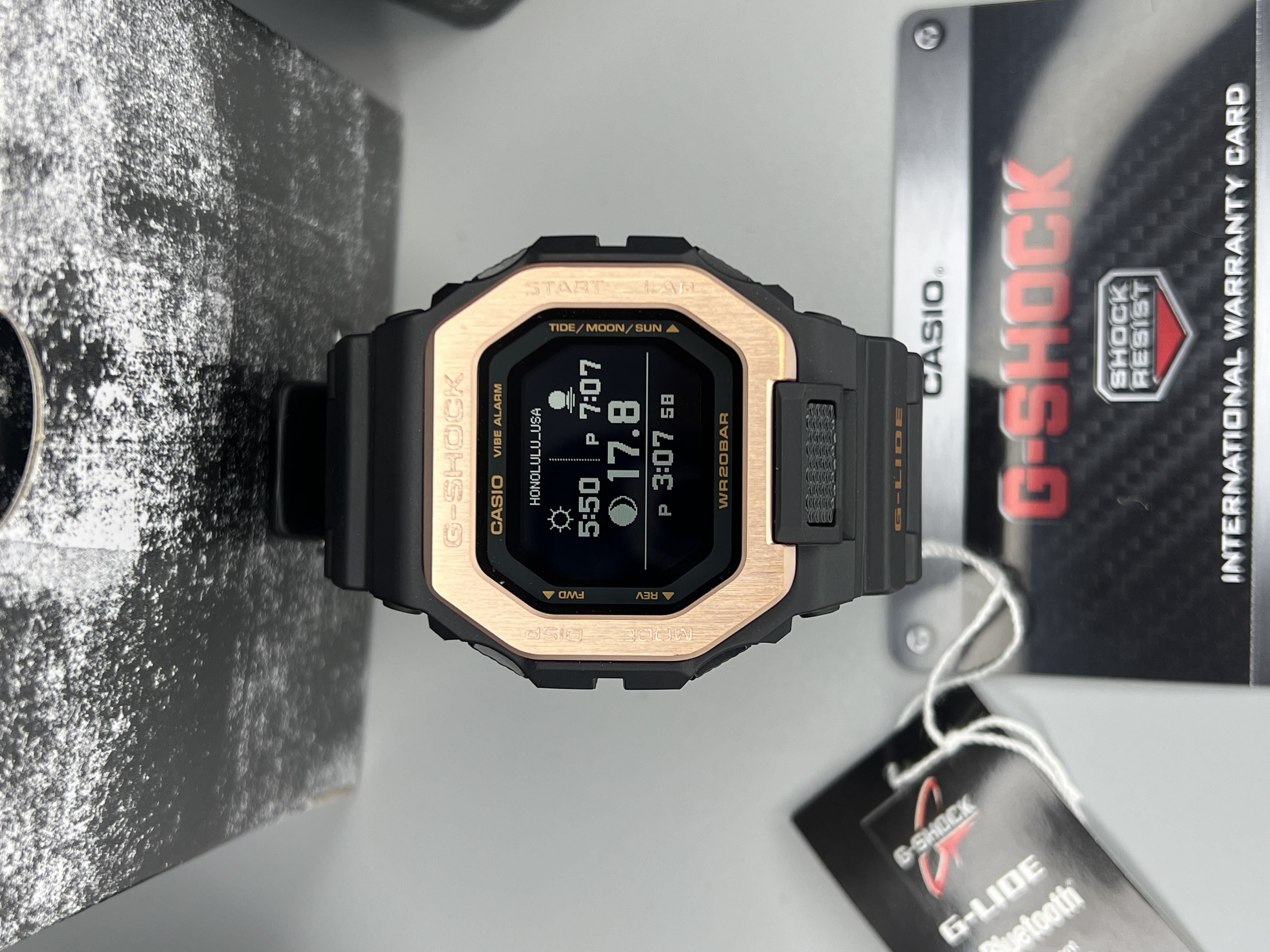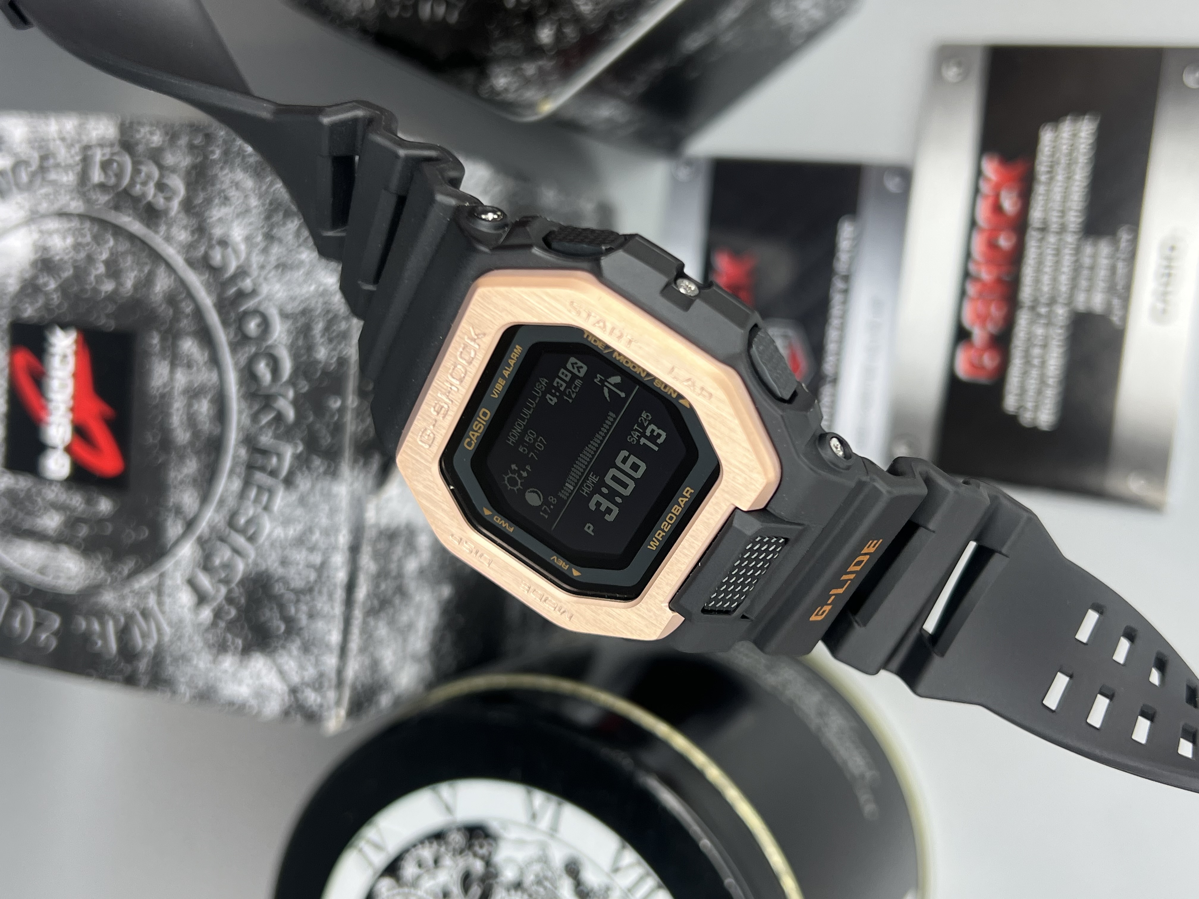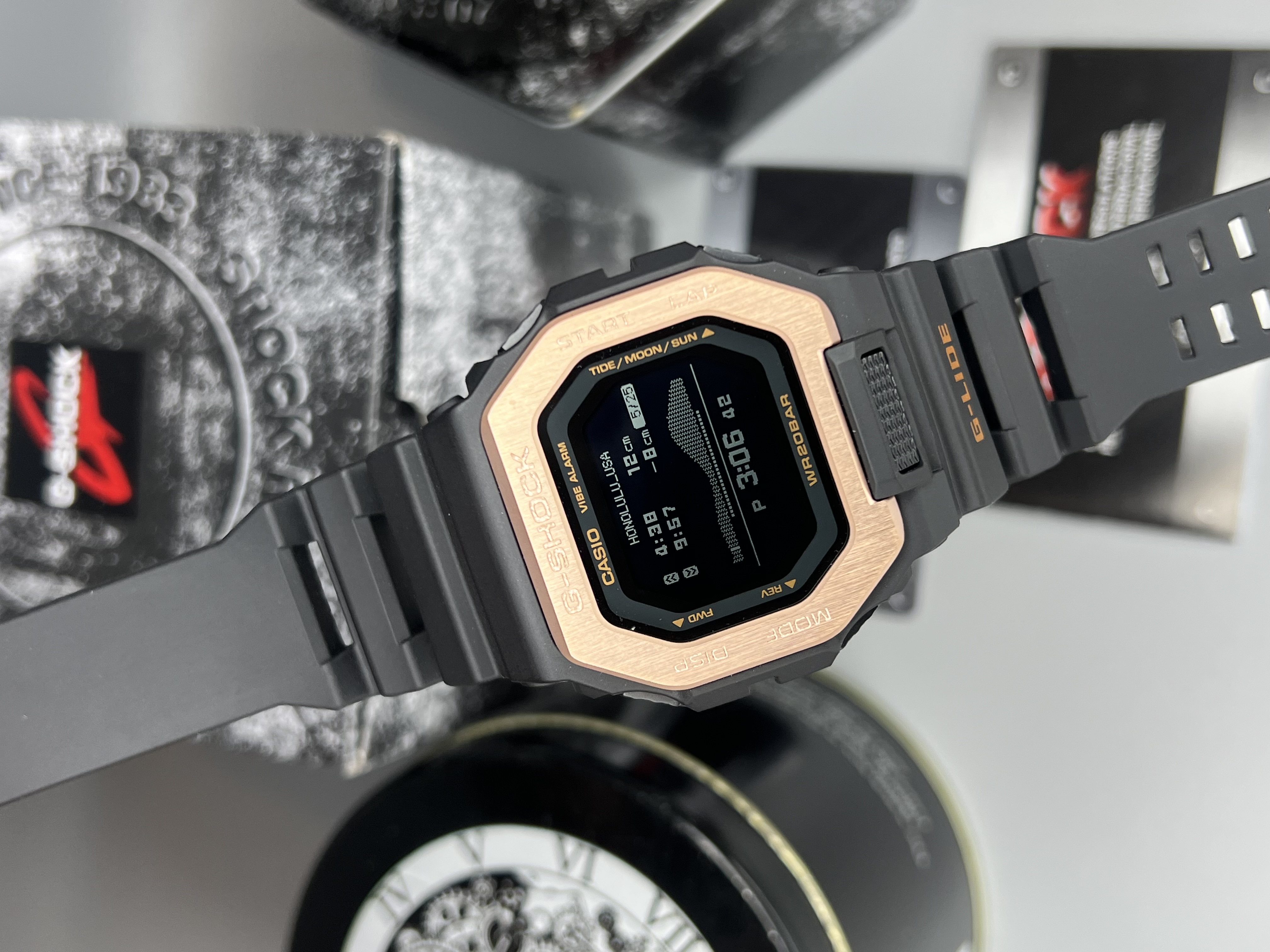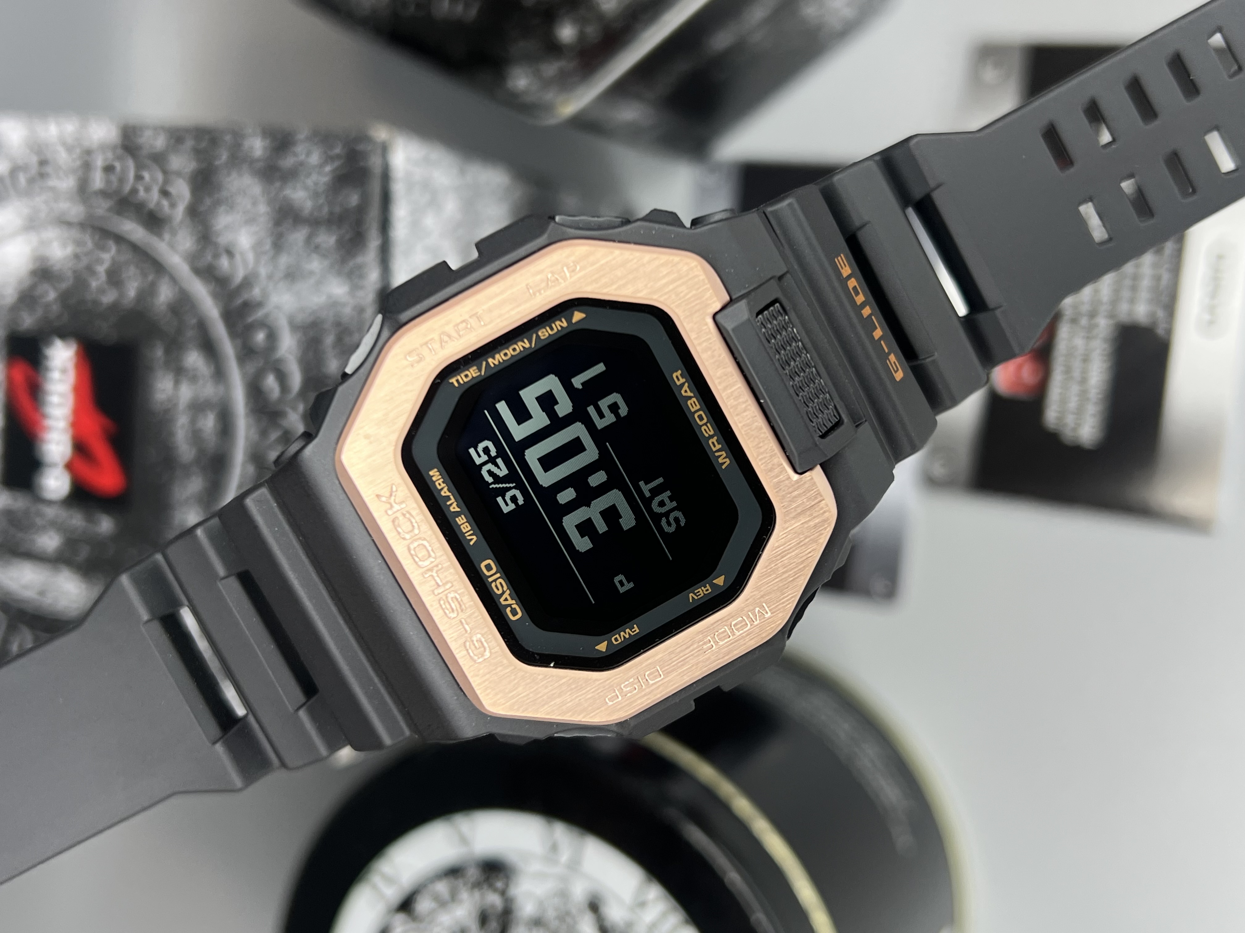 با Casio G-Shock GBX-100NS تجربهای کامل از استایل ساحلی و حس ماجراجویی خواهی داشت. این مدل با طراحی مقاوم در برابر ضربه و آب تا ۲۰۰ متر، برای موجسواری و فعالیتهای آبی عالیه. نمایشگر MIP LCD با وضوح بالا امکان مشاهده گرافیکهایی مثل نمودار جزر و مد، فاز ماه و زمان طلوع/غروب رو به سادگی فراهم میکنه. اتصال بلوتوث به موبایل امکان تنظیم آسان و همگامسازی اطلاعات نقاط ساحلی رو فراهم میکنه. ترکیب رزین و فلز در قاب به همراه طراحی فنی و زیبا، باعث شده GBX-100NS هم در دریا و هم در استایل شهری بدرخشه.