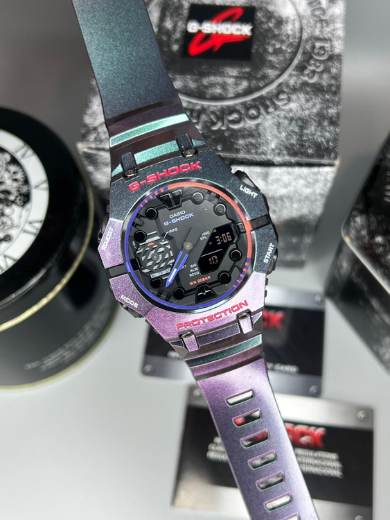 ساعت G-Shock GA-B001 با طراحی نوآورانه و ساختار Carbon Core Guard، ترکیبی از سبک آیندهنگر و مقاومت بالاست. قابلیت اتصال بلوتوث به موبایل، تنظیم زمان خودکار و ثبت موقعیت زمانی در اپ، امکانات هوشمندانه این مدل رو تکمیل میکنن. مقاومت در برابر ضربه و آب تا ۲۰۰ متر باعث میشه در شرایط سخت هم عملکرد قابلاطمینانی داشته باشه. طراحی bezel و بند متصل در نقاط ۳ و ۹ ساعت، ظاهر یکپارچه و منحصربهفردی به این ساعت داده است.