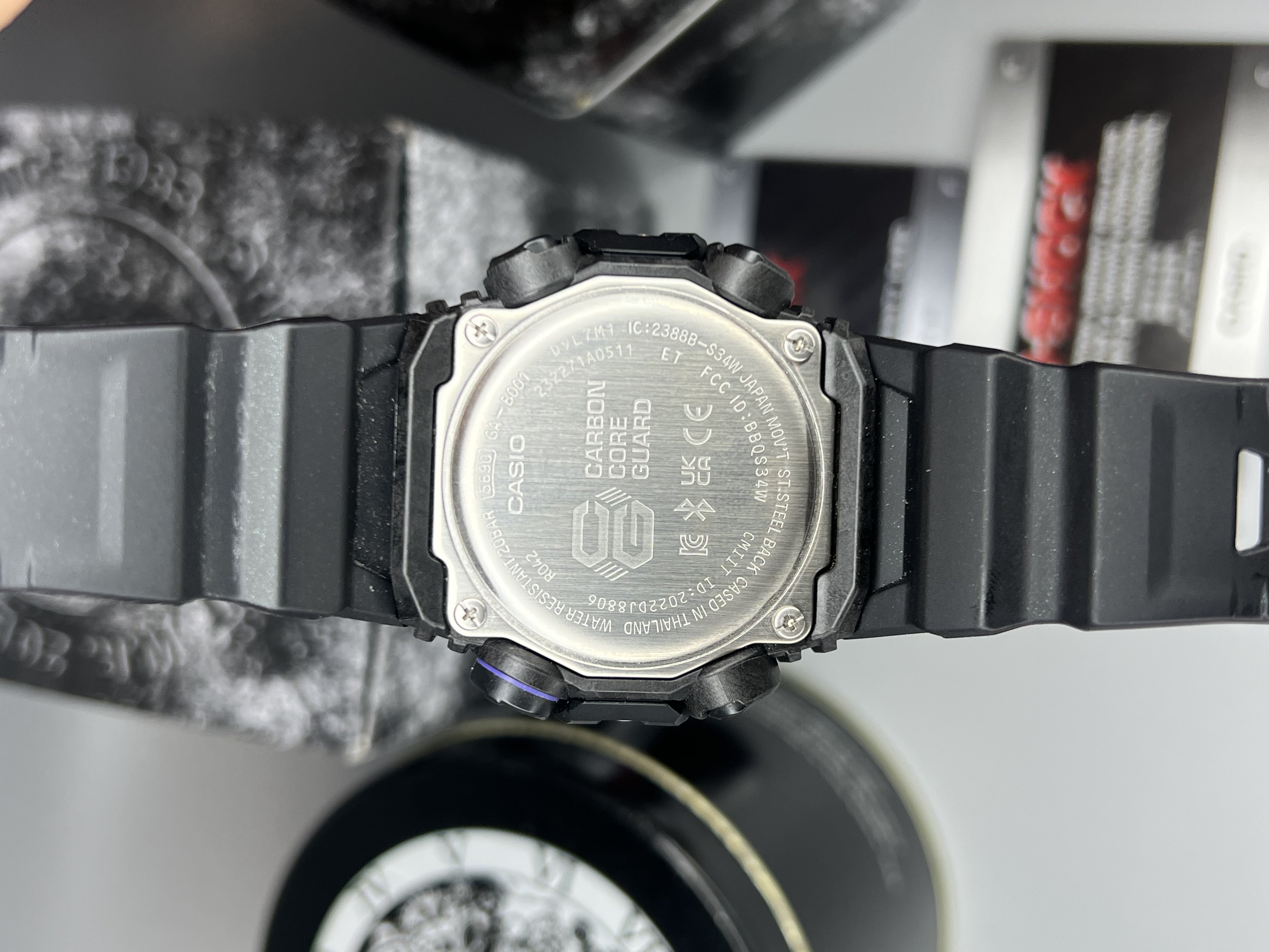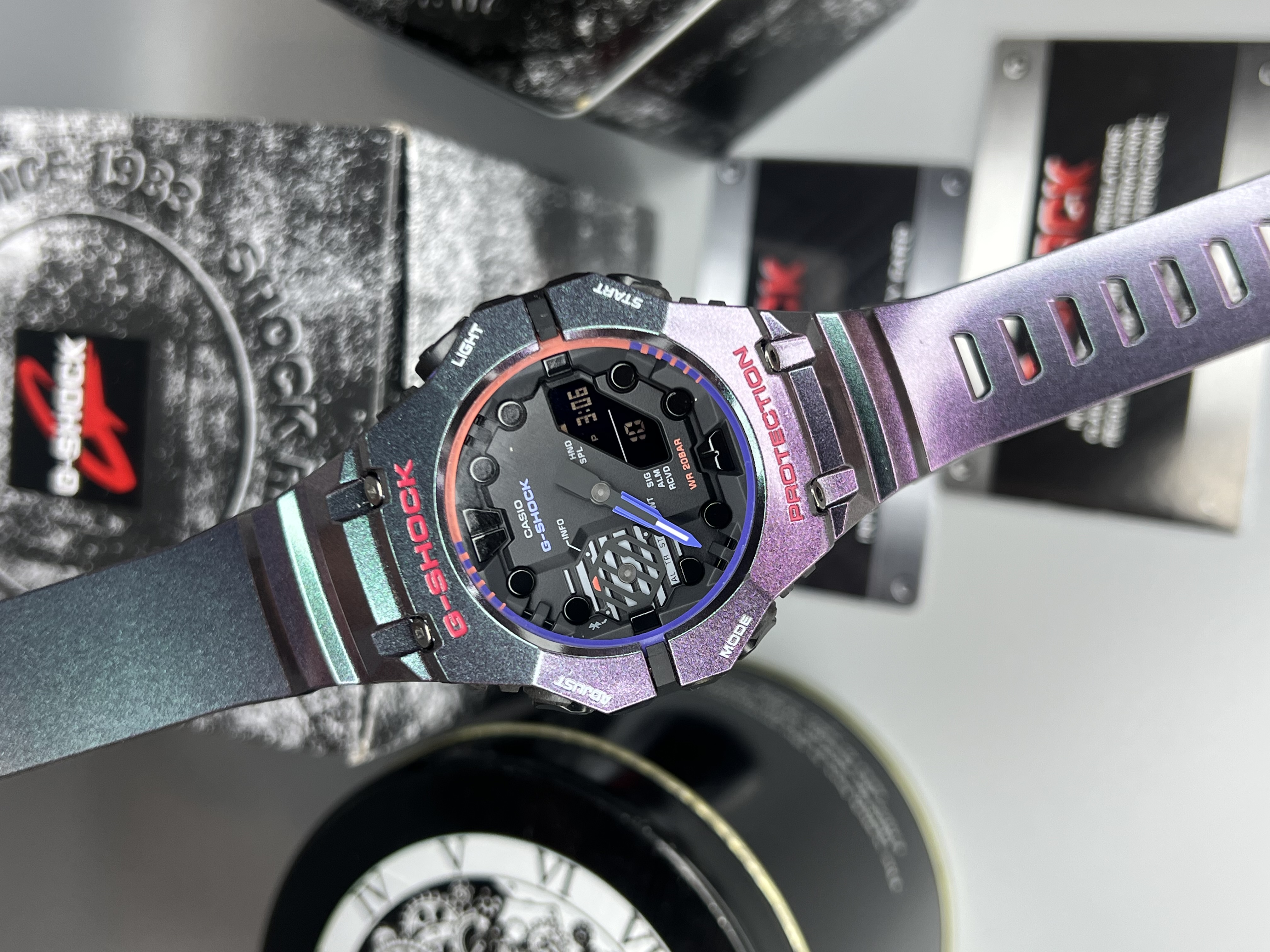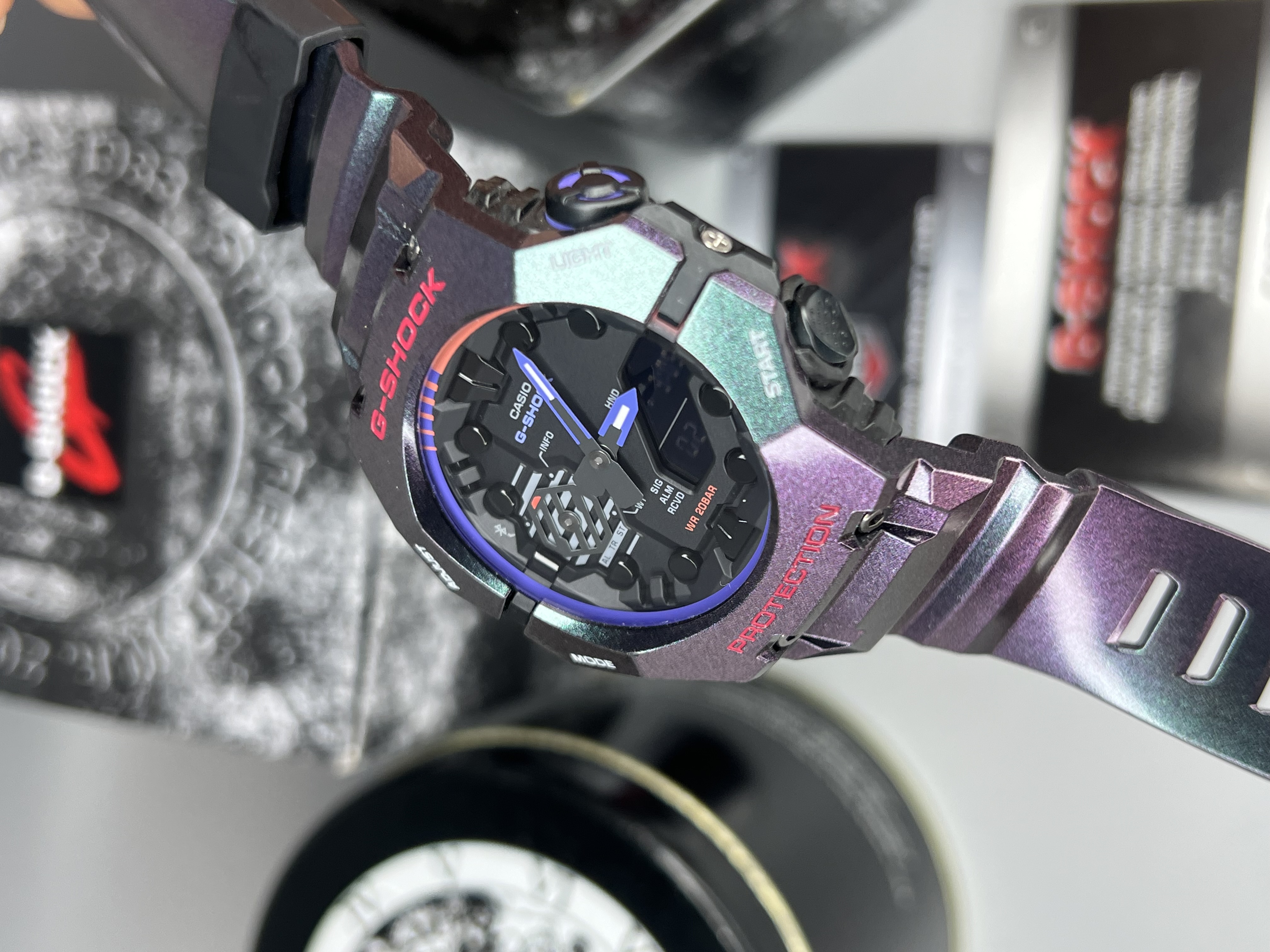 ساعت G-Shock GA-B001 با طراحی نوآورانه و ساختار Carbon Core Guard، ترکیبی از سبک آیندهنگر و مقاومت بالاست. قابلیت اتصال بلوتوث به موبایل، تنظیم زمان خودکار و ثبت موقعیت زمانی در اپ، امکانات هوشمندانه این مدل رو تکمیل میکنن. مقاومت در برابر ضربه و آب تا ۲۰۰ متر باعث میشه در شرایط سخت هم عملکرد قابلاطمینانی داشته باشه. طراحی bezel و بند متصل در نقاط ۳ و ۹ ساعت، ظاهر یکپارچه و منحصربهفردی به این ساعت داده است.