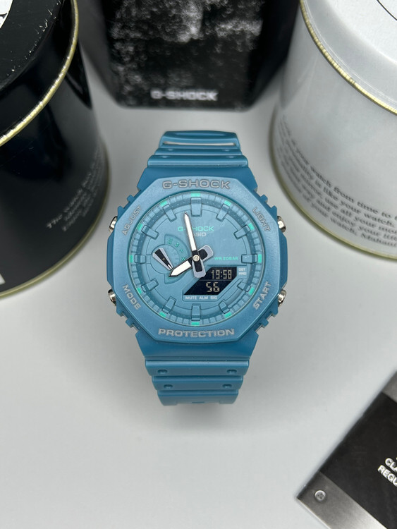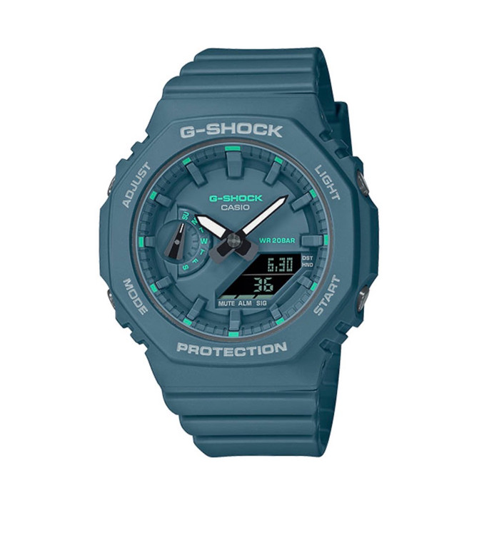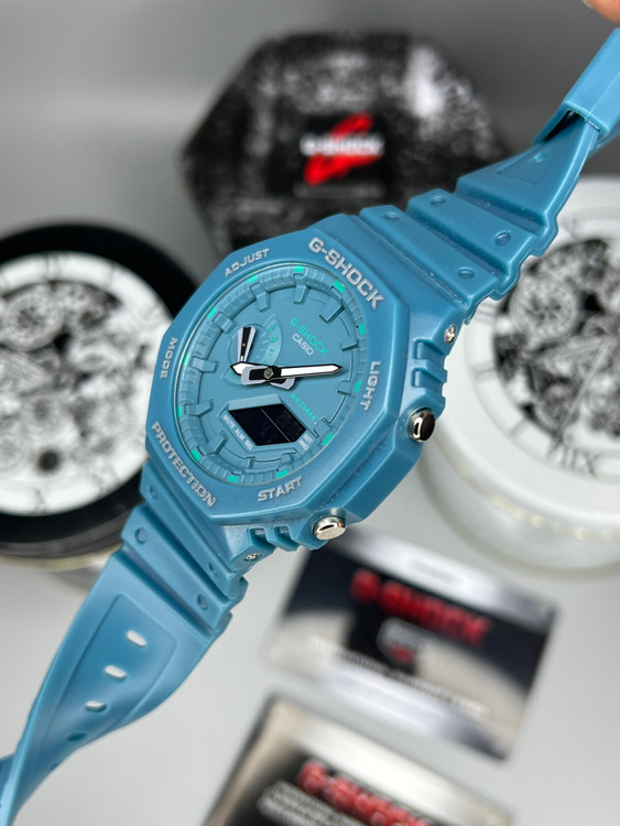 ساعت G-Shock GMA-S2100 نسخهای ظریفتر و سبکتر از مدل معروف GA-2100 است که با طراحی هشتضلعی و ظاهری مدرن، جذابیت خاصی دارد. بدنه آن از رزین تقویتشده با فیبر کربن ساخته شده تا در برابر ضربه و فشار مقاومت بالایی داشته باشد. این مدل با وزن تنها ۴۱ گرم، برای استفاده روزمره و مچهای ظریفتر ایدهآل است. همچنین دارای امکاناتی مانند کرنومتر، تایمر، زمان جهانی، نور LED و مقاومت در برابر آب تا عمق ۲۰۰ متر میباشد.