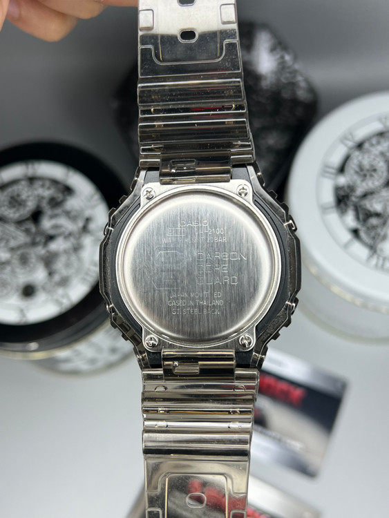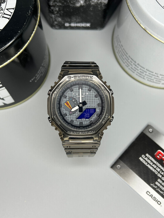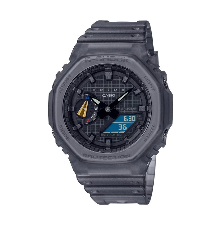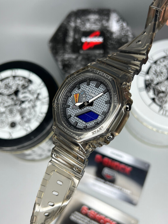 ساعت G-Shock GA-2100FT حاصل همکاری خاص با برند فرانسوی FUTUR است و با طراحی شفاف خاکستری و جزئیات آبی، سفید و قرمز، ظاهری مدرن و خاص دارد. بدنهی سبک و مقاوم آن با ساختار Carbon Core Guard ساخته شده تا در برابر ضربه و فشار دوام بالایی داشته باشد. این مدل با امکاناتی مانند کرنومتر، تایمر، زمان جهانی، نور LED و مقاومت در برابر آب تا عمق ۲۰۰ متر عرضه شده است. انتخابی عالی برای کسانی که به دنبال ترکیب استایل شهری و عملکرد حرفهای هستند.